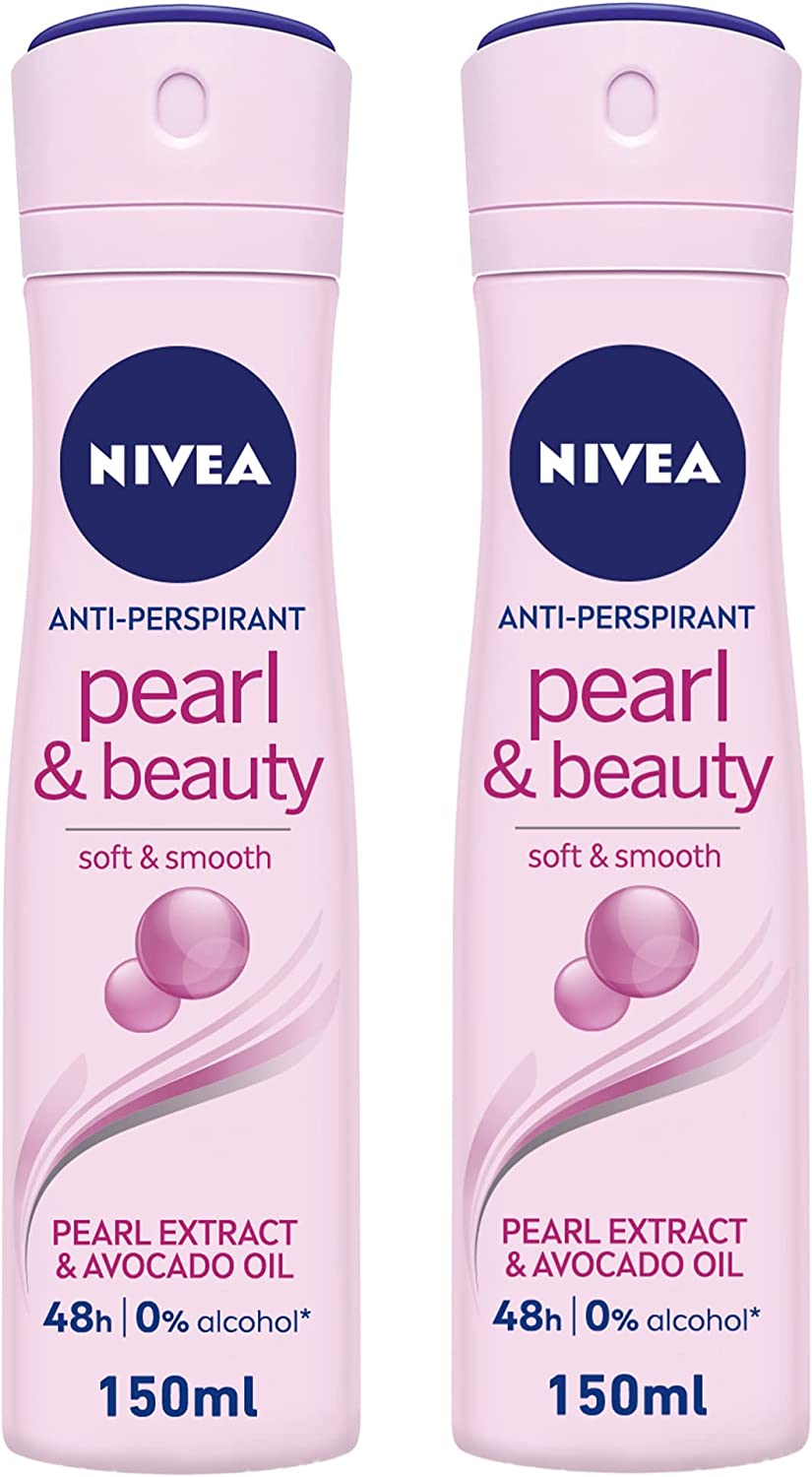 NIVEA Antiperspirant Spray for Women, Pearl & Beauty Pearl Extracts, 2x150ml