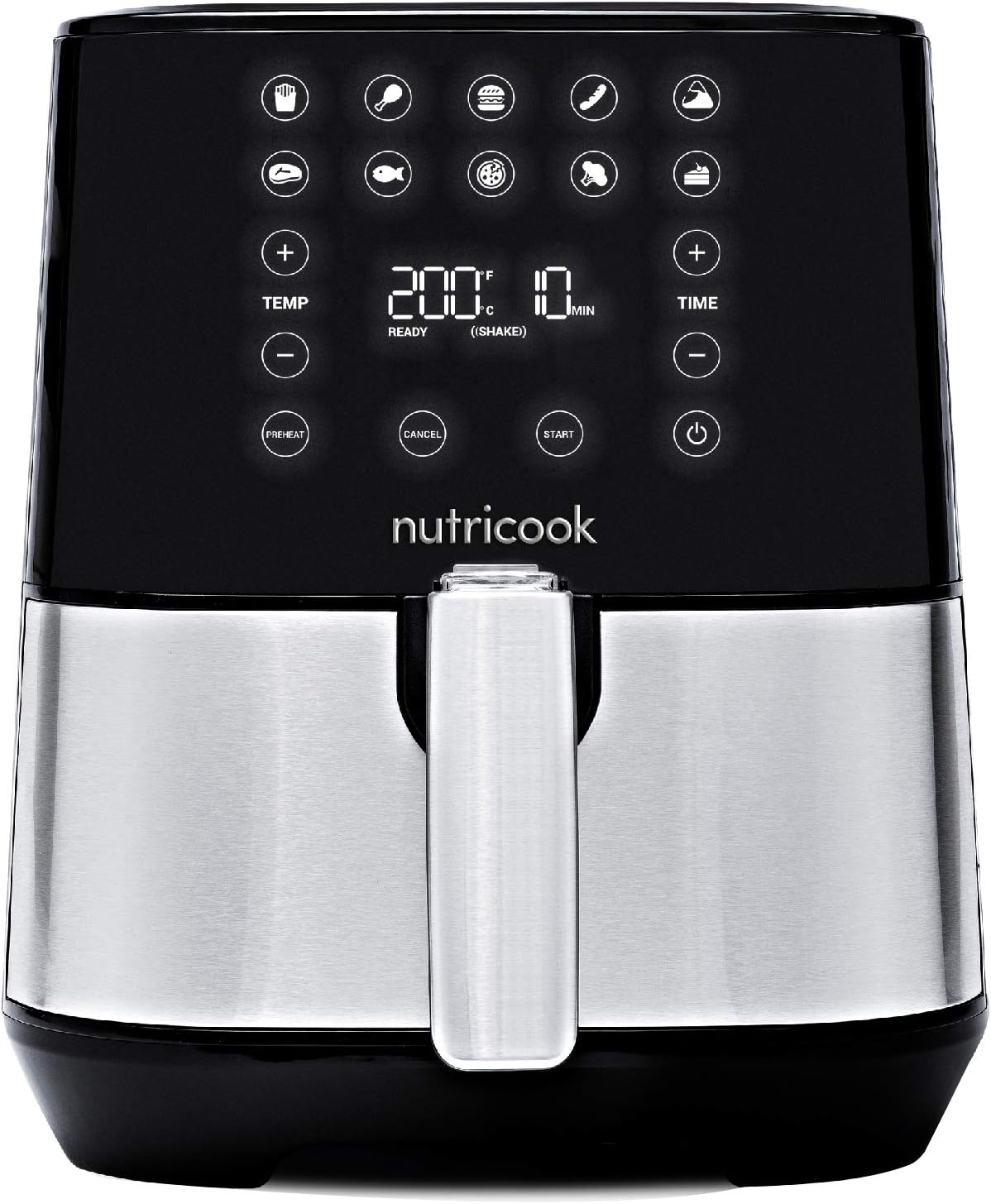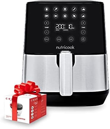 Nutricook Air Fryer 2,3.6 Liters, 1500 Watts, Digital 10 Pre-set Programs With Built-In Preheat Function, Stainless Steel/Black, 2 Years Warranty + CRED Quick Pull Chopper 650 ml, Amazon exclusive