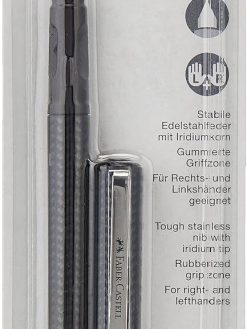 Faber Castell Fountain Pen Carbon Design Medium Nib + 6 Blue Ink Cartridges, SCHOOL+, 149809