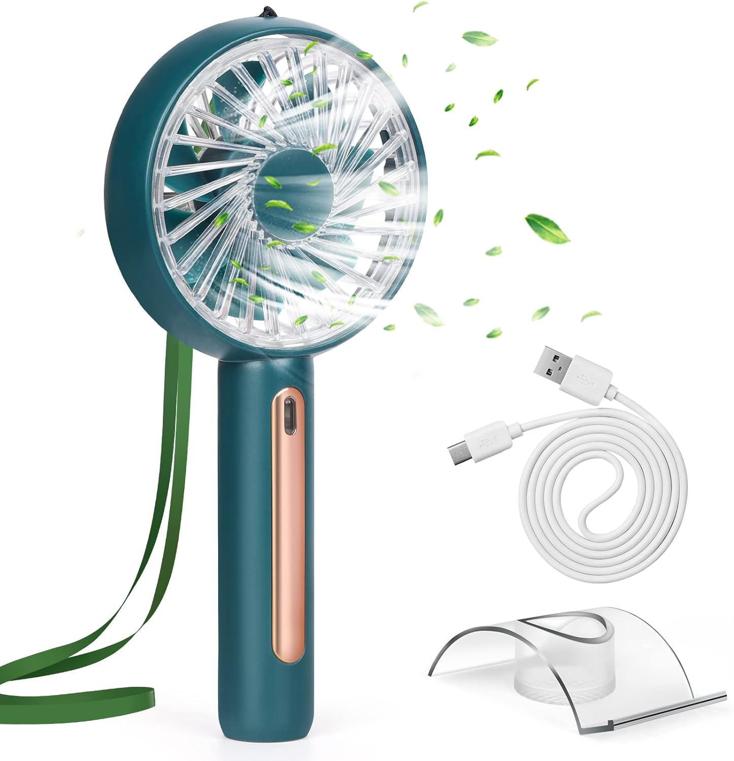 PADOM Handheld Fan, Portable Mini Fan Rechargeable with 4 Speeds, Hand Held USB Desk Fan with Cellphone Stand & Adjustable Angle for Office Home Outdoor Traveling (Green)
