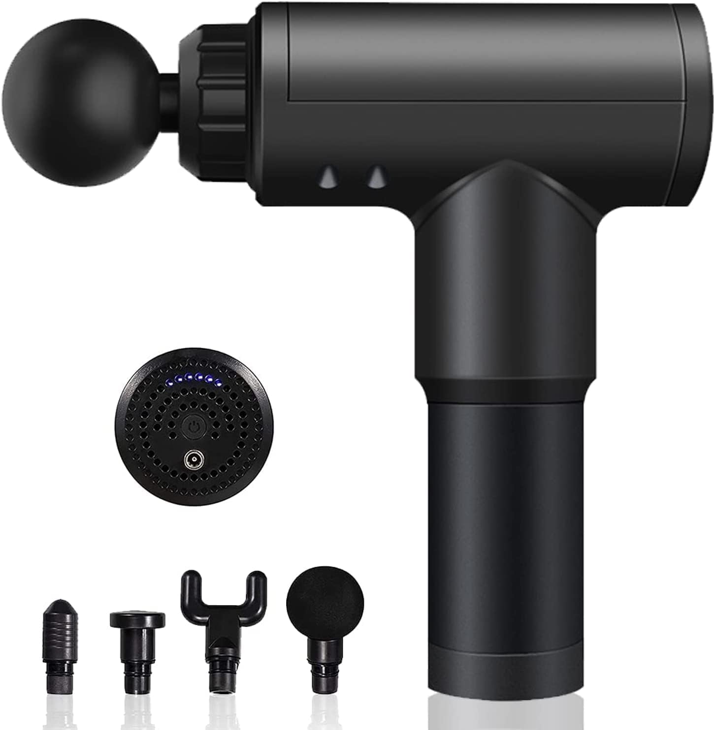 Padom Massage Gun, Percussion Muscle Massager Deep Tissue Massage Gun for Pain Relief with 4 Massage Heads 6 Speed High-Intensity Vibration Super Quiet Cordless Handheld (BLACK)