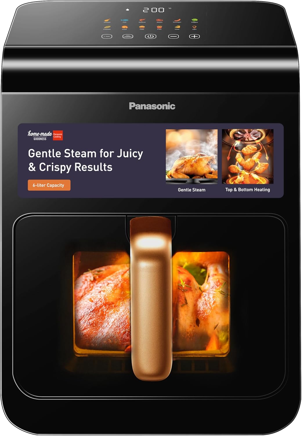 Panasonic Air Fryer NF-CC600, 1450W, 6 liters, Gentle steam, Viewing window, Top & Bottom heating, LED touch panel with 11 preset menu – Black & Blue