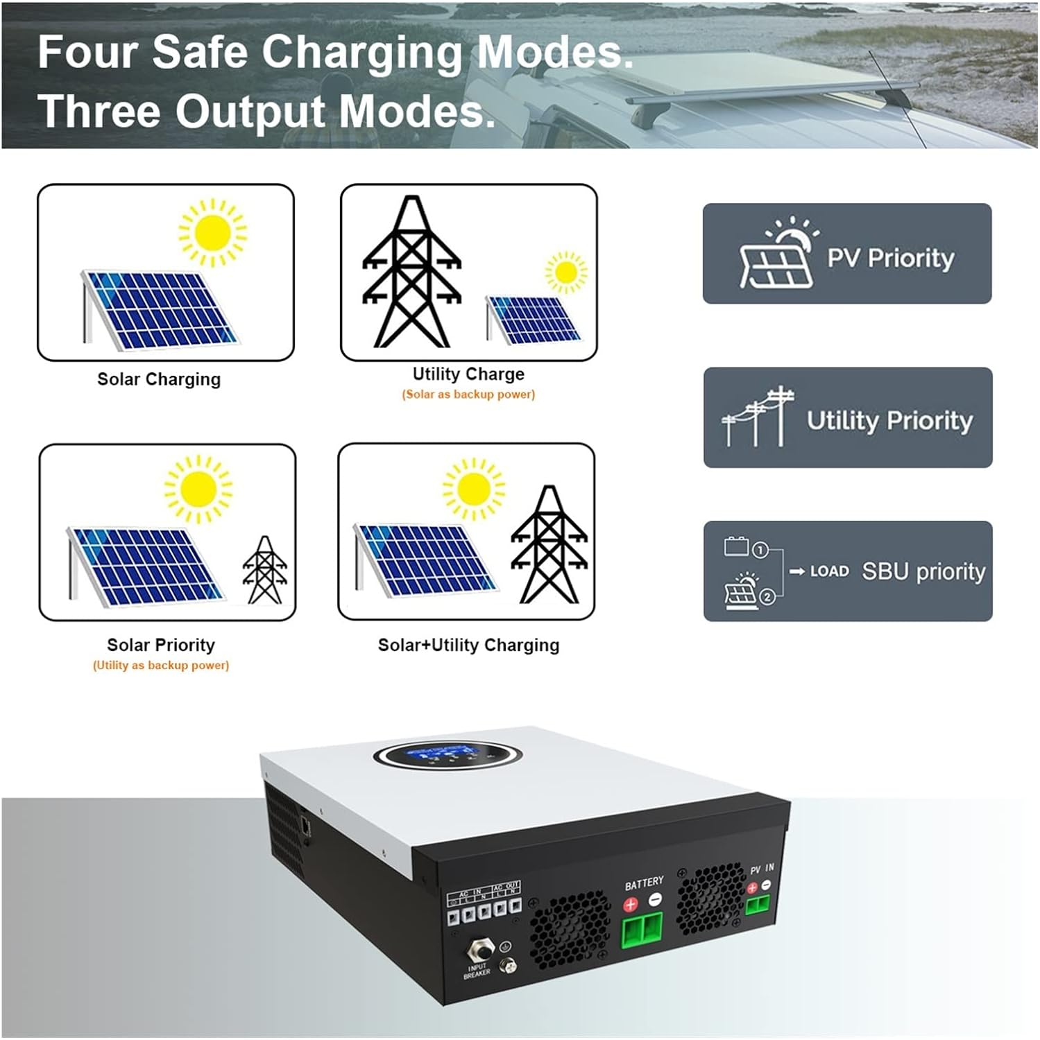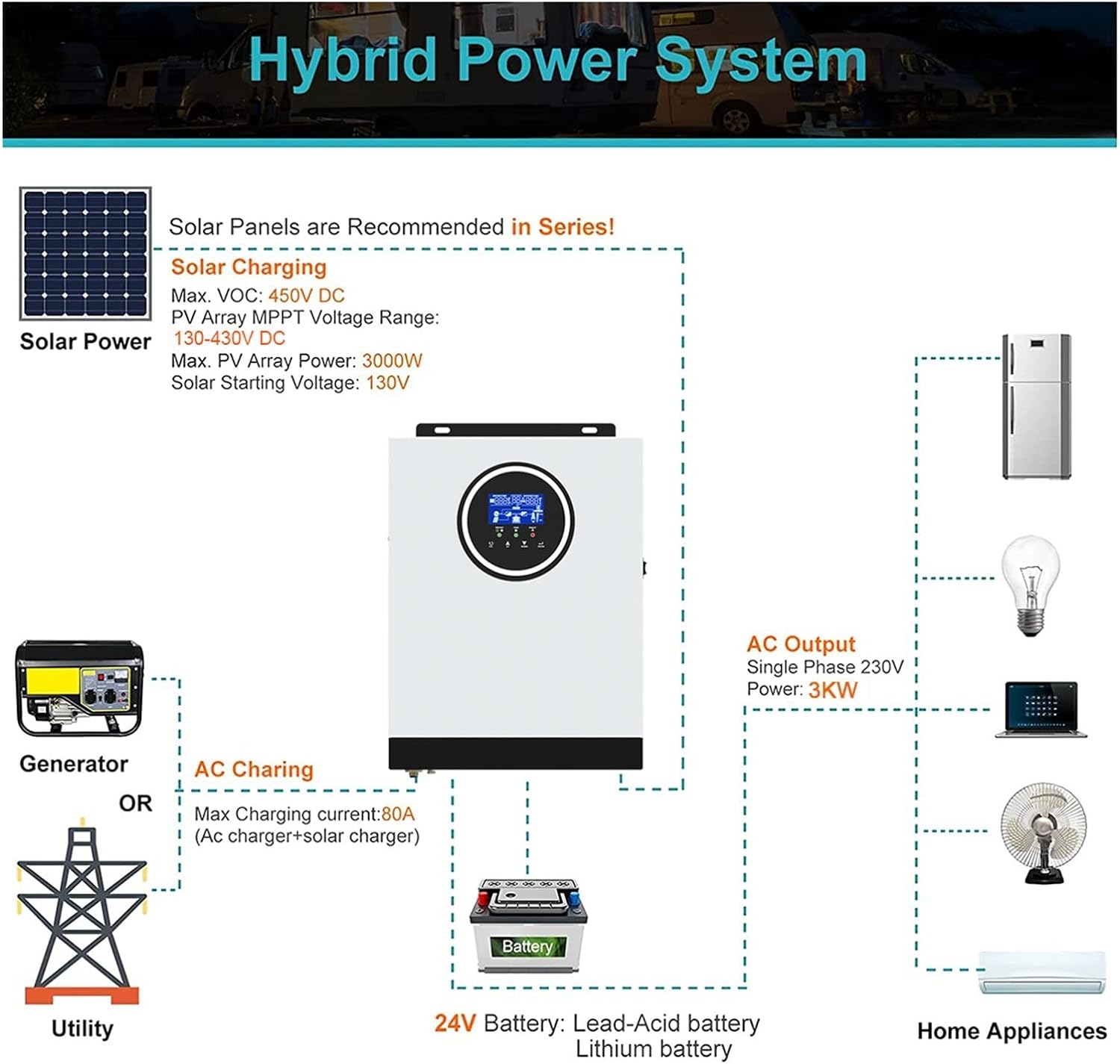 power inverter 3kW Solar Hybrid Inverter 24V AC230V Off-Grid Pure Sine Wave Inversor 80A MPPT Solar Charger,PV 130-430V