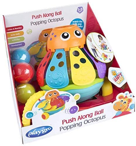 - Thrilling ball popping octopus with long handle to push along, Perfect companion for first attempts to walk