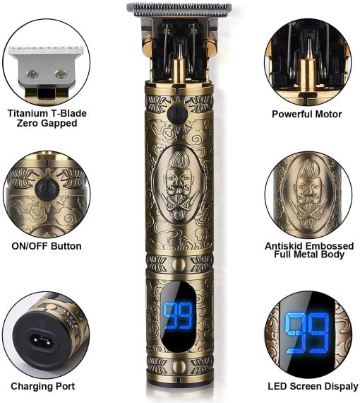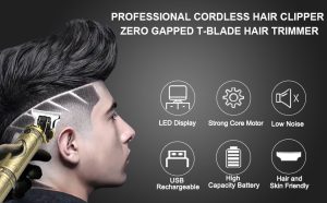 - ZERO GAPPED T BLADE CUTTER HEAD Real zero gapped anium T blade of R shaped obtuse angle, it is sharp and safe No stuck hair and No scalp hurt It makes very easy to style your hair, including engraving of hairline. Equipped with 3 kinds of limit combs (1mm, 2mm, 3mm) to fit your multiple haircut needs. Very professional hair clippers set.