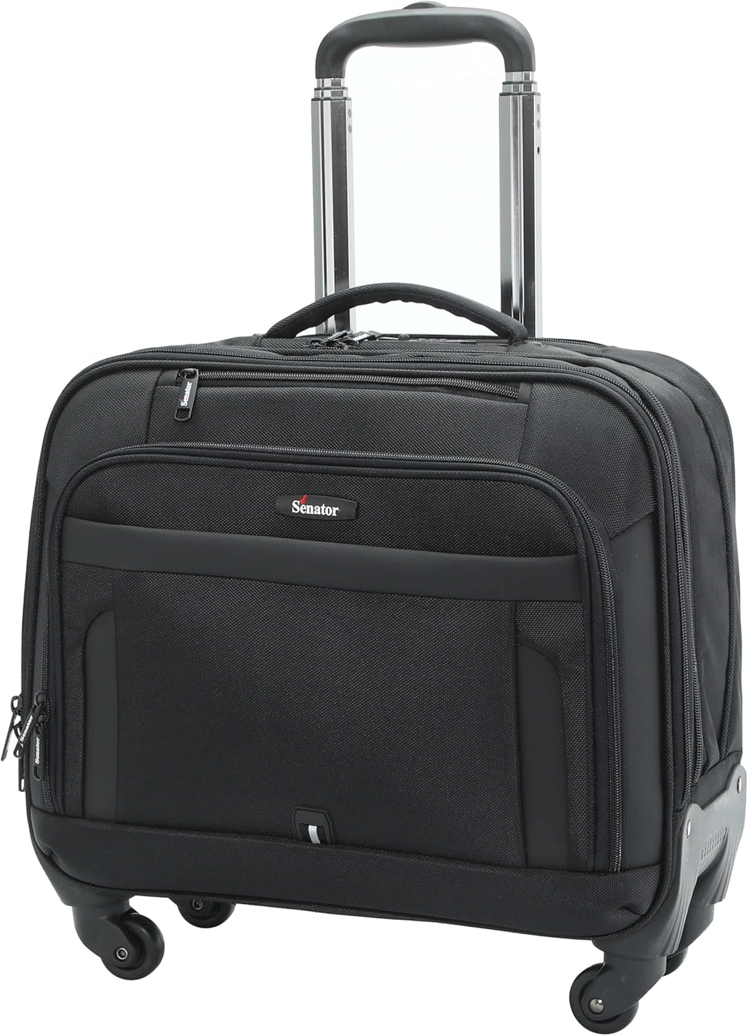 Senator 17-inch Premium Pilot Bag Water Resistant 4 Spinner Wheeled Rolling Laptop Case Multifunctional Compartments with Safe Zippers for Unisex, KH102