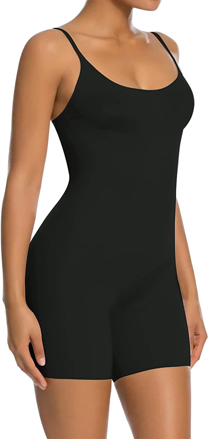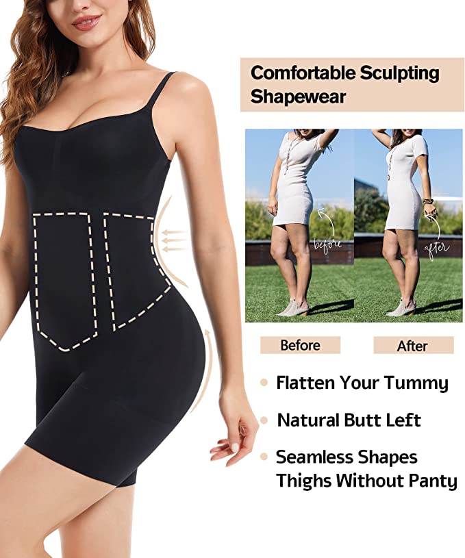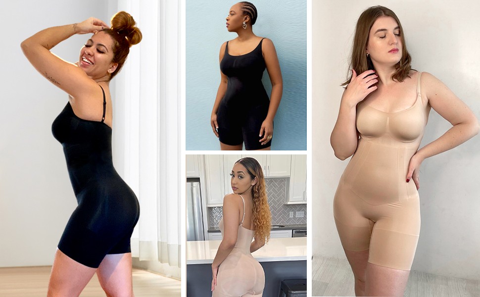 - FULL CONTROL SHAPEWEAR: Body shaper bodysuit is lightweight and powerful, featuring fully bonded front panels for a tabletop flat stomach and edge-bonded side panels that offer squeeze-free slimming and easy movement. At the same time, this butt lifter shorts shapewear can help tighten your tummy and lift your buttock. The thigh compression design ensures this mid-thigh slimmer will not roll down or up.