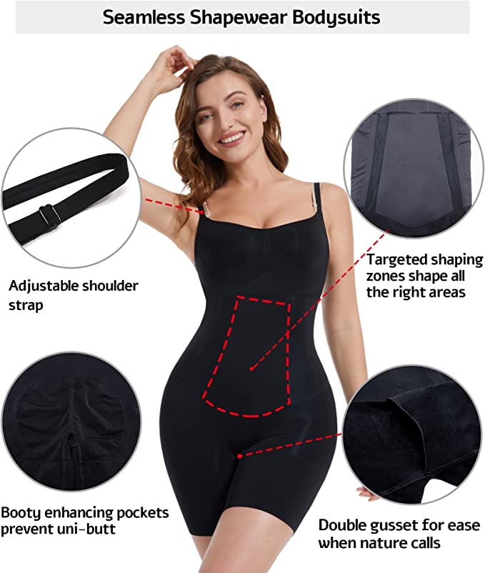 - BONDED NECKLINE & UNDERARMS design won’t rub or irritate skin; Two Adjustable Straps, which is convenient for all kinds of women with different torsos and heights to wear, ensure this seamless shapewear conforms to any body type to the most extent offering your an excellent wearing experience; Double-gusset opening for ease when nature calls.