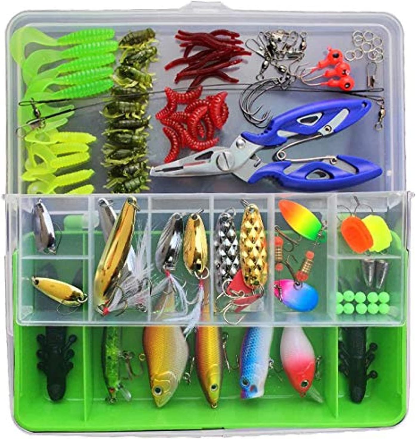 SKEIDO 101 Pcs Fishing Lure Set Hard and Soft Bait Hook with Tackle Box