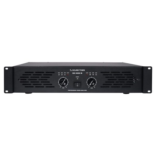 The Sound Town dual-channel NIX-6000IB amplifier provides massive power output at an affordable price. It comes with XLR and 1/4″ TRS input connectors and can be easily connected to your PA system. Each of the two channels has its own DC and thermal overload protection that can protect your amplifier and speakers. Two fans in the chassis efficiently prevent excessive heat from building up and keep your rig running. The amplifier is built with top quality components and you can rely on it for great sound performance and reliability. The NIX-6000IB amplifier is capable of delivering 750W RMS per channel @ 8 Ohms, 1500W RMS per channel @ 4 Ohms and 6000W peak output. It comes with a heavy duty metal exterior and can hold up to touring applications. It is ideal for small to medium sized clubs, restaurants, stages, mobile PA systems, schools, places of worship, public installations, etc. FEATURES XLR and 1/4″ TRS input connectors provide great compatibility Independent DC and thermal overload protection on each channel automatically protects the amplifier and speakers Efficient dual DC fans prevent excessive thermal buildup The rugged, heavy duty metal 2U rack mount chassis holds up to touring applications DOWNLOADS User Manual