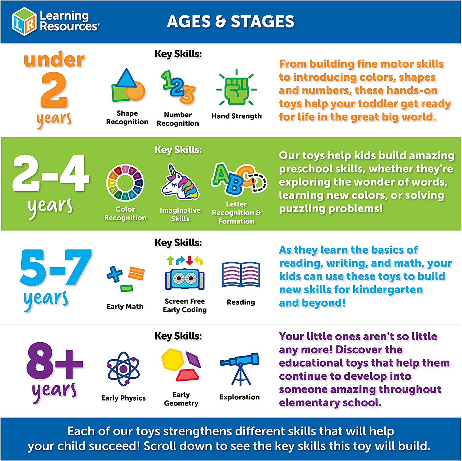 - GIVE THE GIFT OF LEARNING: Whether you’re shopping for holidays, birthdays, or just because, toys from Learning Resources help you discover new learning fun every time you give a gift! Ideal gift for Halloween, Christmas, Stocking Stuffers, Easter Baskets Stuffers or even for Homeschool.