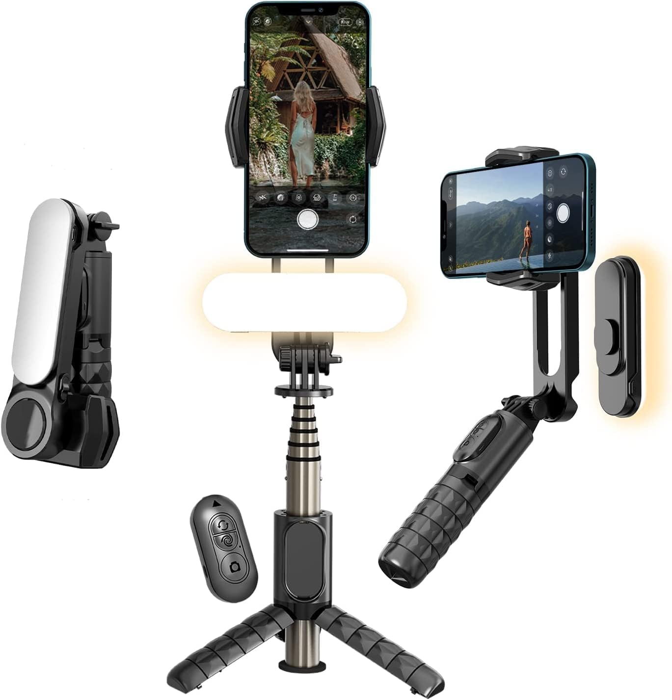 TERRIFI Gimbal Stabilizer For Smartphones, 360° Rotation Tripod with Wireless Remote Fill Light, Portable Phone Holder Auto Balance 1-Axis Gimbal for Filming Bluetooth Selfie Stick Mobile Phone Holder