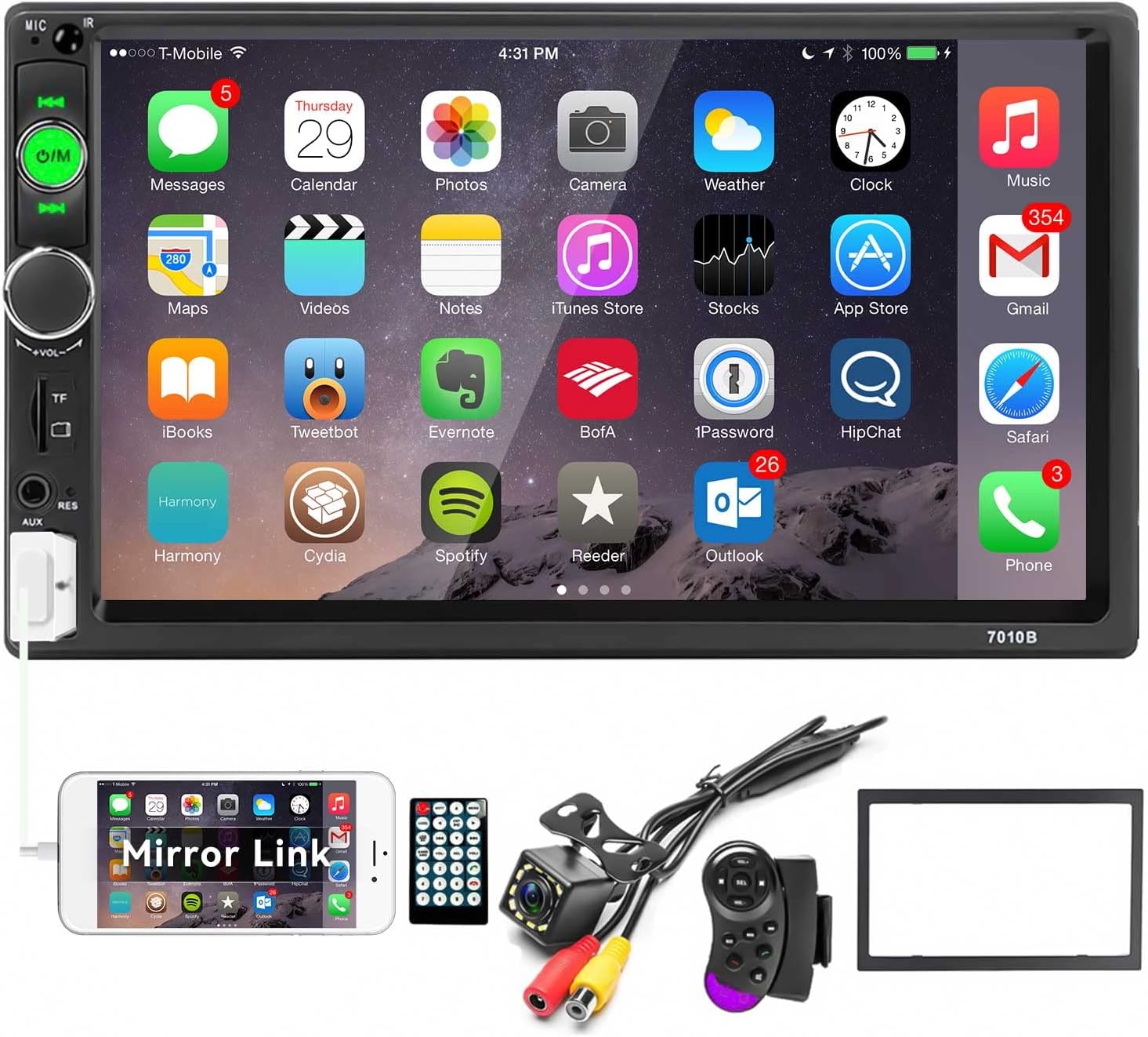 UNITOPSCI Car Stereo Double Din Bluetooth Car Radio 7 Inch Car MP5 Player 2 Din HD Touch Screen FM Radio Audio Receiver AUX in USB TF Card Input Multimedia Player Mirror Link with Backup Camera