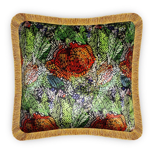 Stunning Velvet cushion cover digitally printed with intricately detailed designs expertly crafted to accessorise sofas chairs, chaise lounge and beds.
