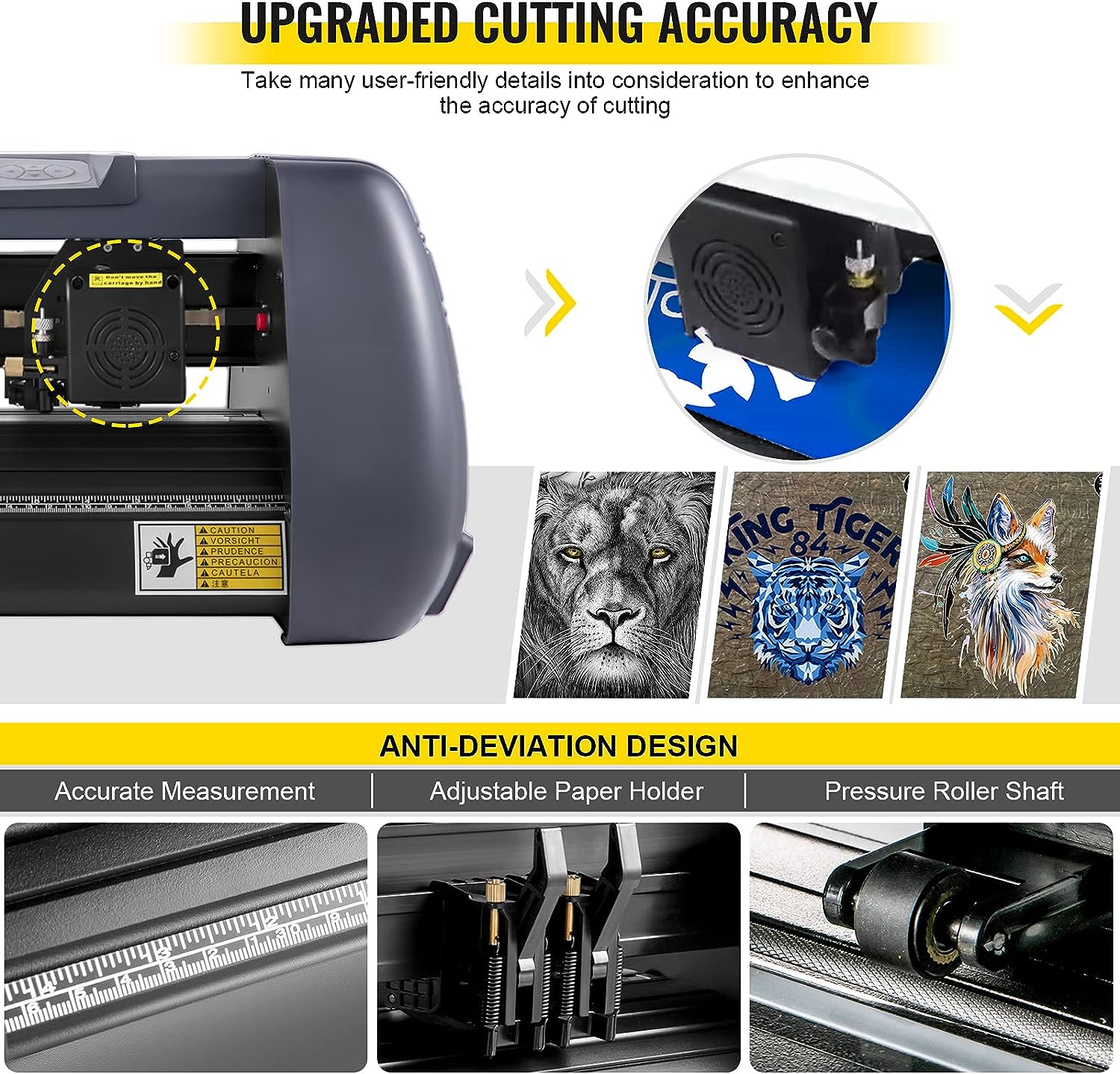 Trustworthy Performance: The cutting plotter adopts an ARM motherboard and 16 MB high-speed cache memory. Two double-spring pinch rollers and an aluminum knurling stick ensure that the paper feed will not deviate by long distance.