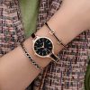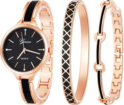 Women Watch Gift Set, Crystal Design Bracelet And Watch Set, Gold / Black