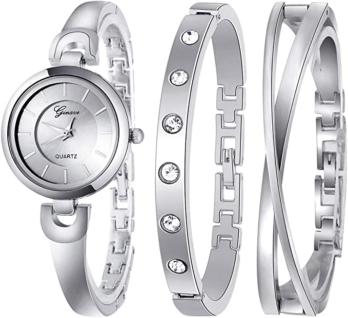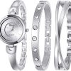 Women Watch Gift Set, Crystal Design Bracelet And Watch Set, Silver