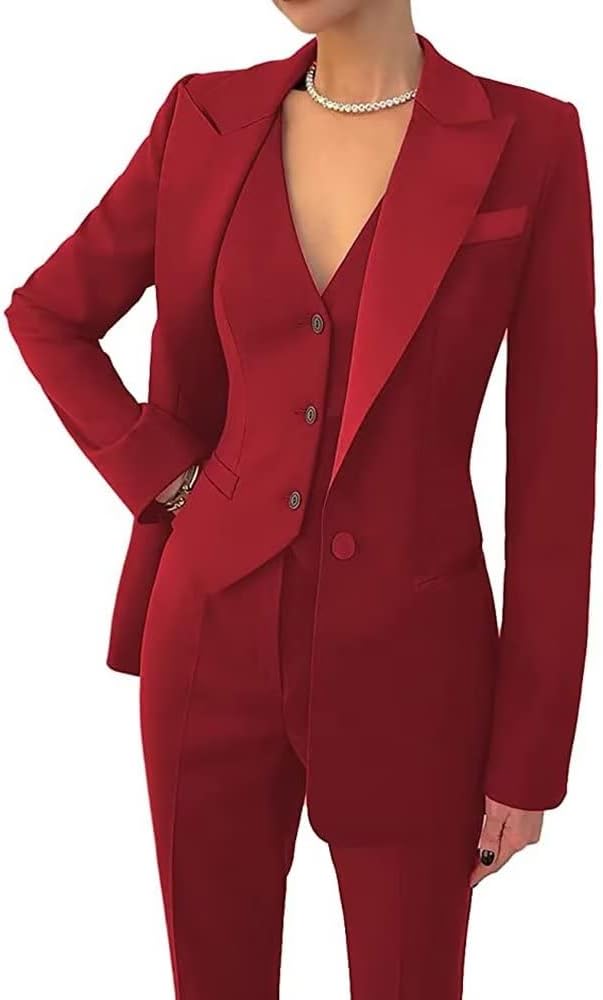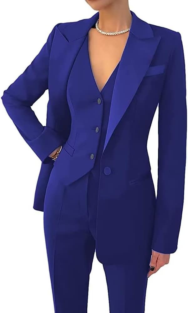 Women’s 3 Piece Suits Blazer Coat Notched Lapel Jacket for Work Set Casual Office Lady Business Suit Set with Pockets