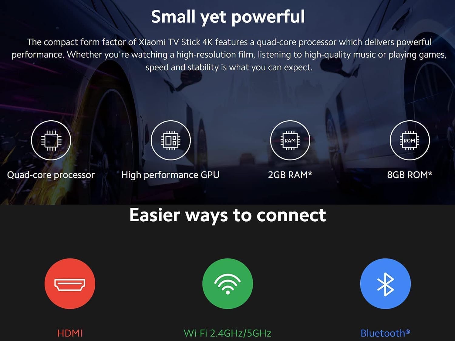 OverviewThe new Xiaomi TV Stick 4K is a portable media streaming device, which supports Dolby Vision. With 4K support, a remote, and Android 11 support, it now rivals the recently launched Realme 4K TV stick. It comes with 2GB of RAM and 8GB of internal storage, for storing apps.