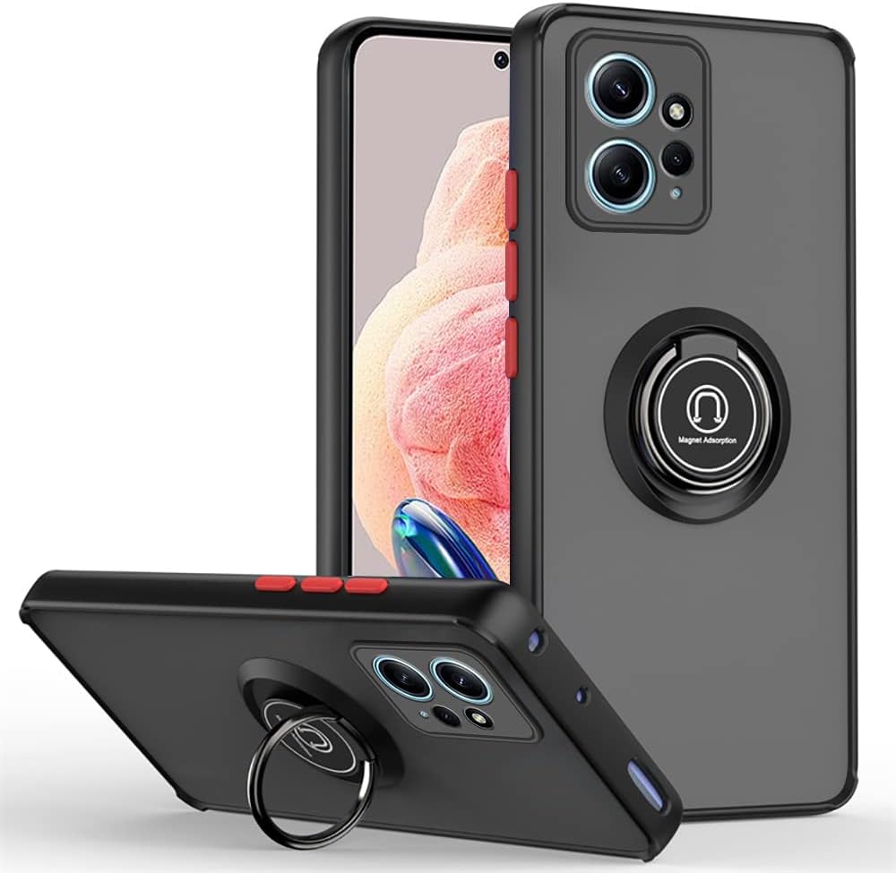 Zubitech Case For Redmi Note 12 4G Case Cover (not for 5G Version) Rotational Metal Ring Grip Kickstand Cover Magnetic Car Mount Holder Case Shockproof TPU Bumper Protection Case (Black)